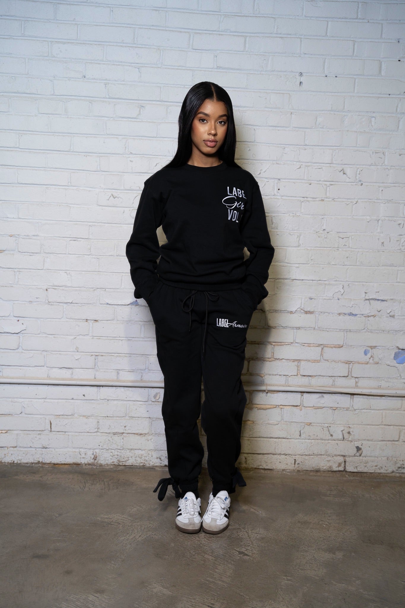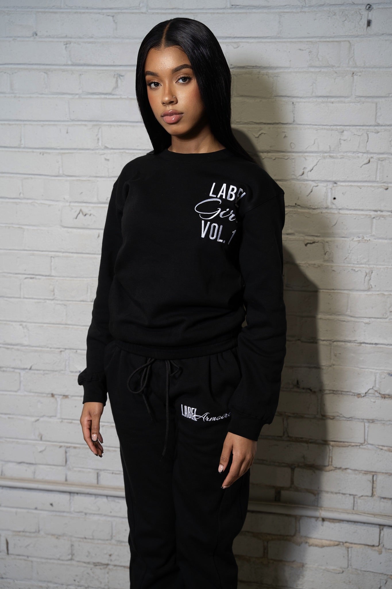 This one is for the girls. A simply cute sweatshirt perfectly paired with our signature sweatpants or just as fine alone. Fully fleece lined designed for the female physique with double banded elastic waist hem to accentuate all silhouettes. Adorned with premium threaded embroidery, "Label Girl Vol.1" marking our debut. For the girls who Wear Labels and label less!