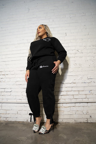 Chic & casual make a perfect pair! Our signature sweatpants are everything but basic. These fully fleece lined joggers were designed for the female physique. The double banded elastic waist is sure to accentuate all silhouettes. Side pockets for convenience, adorned with premium threaded embroidery. The grand finale is the 3 line side seam which is functional for cinching the joggers with included ties while keeping a feminine shape. Whether worn with sambas or heels, you are sure to turn heads!